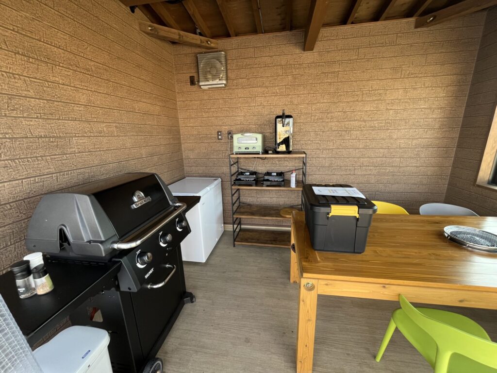 夕食はここでBBQができます。建物の中なので雨の心配がありません。