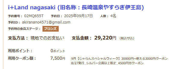 アイランド長崎のホームページやじゃらん、楽天で予約できます。